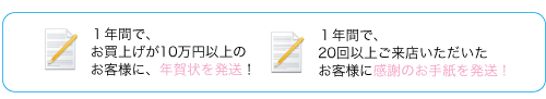 来店回数やポイント残高数から抽出された顧客ランクの多い会員に、加盟店からあいさつ状の送付が可能です。